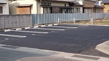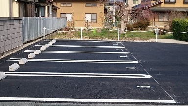 北側の駐車場のラインも、綺麗に見やすくし、車止めのブロックも、新しいものに取り替えました。 |